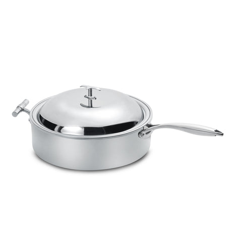 Cook Buffet Collection Induction Chafing Dish, 4 qt., round, lift-off knob dome lid, skillet/long handle, includes pot & food pan, dishwasher safe, 3-ply, stainless steel, brushed finish, 5 Star Series