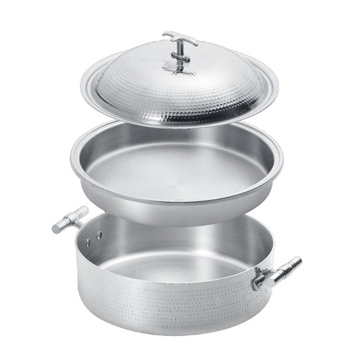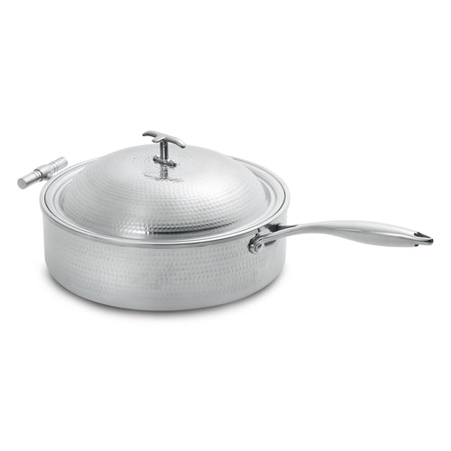 Cook Buffet Collection Induction Chafing Dish, 4 qt., round, lift-off knob dome lid, skillet/long handle, includes pot & food pan, dishwasher safe, 3-ply, stainless steel, hammered finish, 5 Star Series