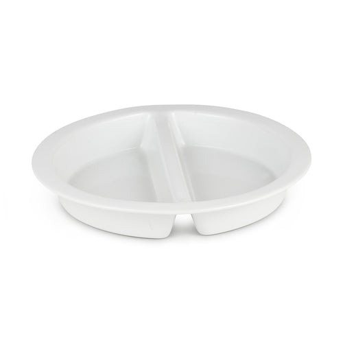 Chafing Dish Food Pan, 8 qt., full size, divided, round, porcelain, fits 6 qt. and 8 qt. Crown, Jazz Rock, Jazz, Roll top collections