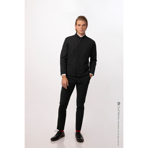 Men's Apex Chef Coat, long sleeves, banded/notched collar with button tab, zip/button front with concealed placket, inset hip pockets & inner left chest pocket, (2) back panel slits, inner lining, 70/30 poly/rayon, black, 2XL