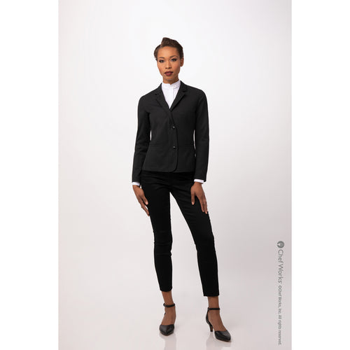 Women's Apex Chef Coat, long sleeves, banded/notched collar with button tab, zip/button front with concealed placket, inset hip pockets & inner left chest pocket, (2) back panel slits, inner lining, 70/30 poly/rayon, black, XL