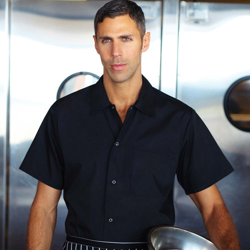 Utility Shirt, short sleeves, metal snaps, left chest patch pocket, classic fit, 65/35 poly/cotton, black, XS
