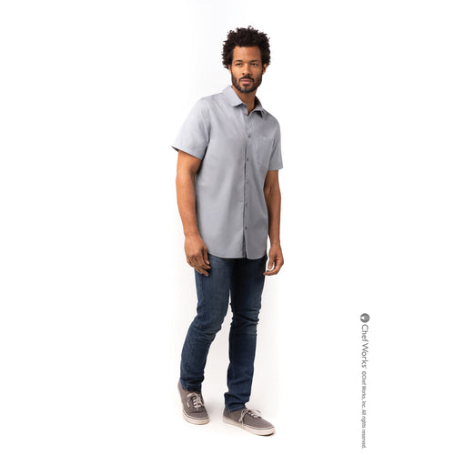 Men's Malibu Shirt, short sleeves, matching button front, left chest pocket & left sleeve pocket, back yoke with pleats, 65/35 poly/cotton, gray, 3XL