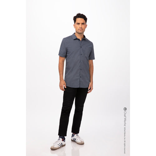 Men's Malibu Shirt, short sleeves, matching button front, left chest pocket & left sleeve pocket, back yoke with pleats, 65/35 poly/cotton, navy, 4XL