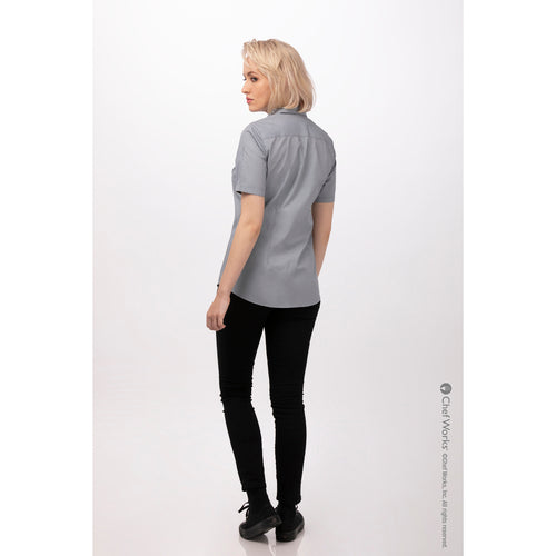 Women's Malibu Shirt, short sleeves, matching button front, left sleeve pocket, front * back darts, 65/35 poly/cotton, gray, 2XL
