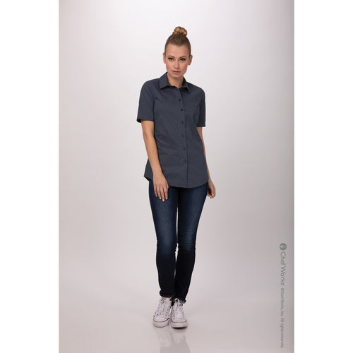 Women's Malibu Shirt, short sleeves, matching button front, left sleeve pocket, front * back darts, 65/35 poly/cotton, navy, large