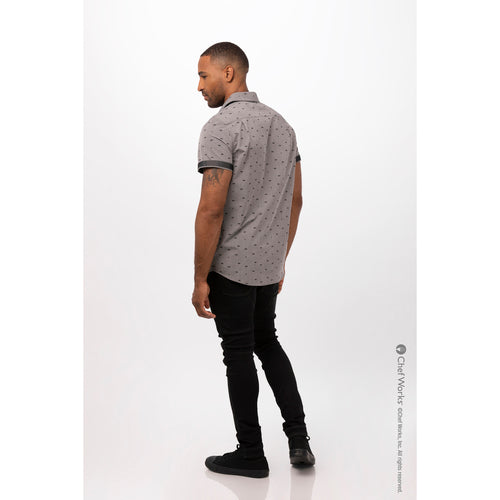 Men's Omaha Shirt, short sleeves, matching button front, left chest pocket, contrast collar band & inner sleeve hem, back yoke with pleats, 65/35 poly/cotton, "animal print", gray, 4XL
