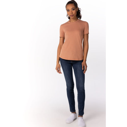 Men's Striped T-shirt, short sleeves, crew neck, reverse cover stitch detail, curved hem, 60/40 poly/cotton, orange, XL