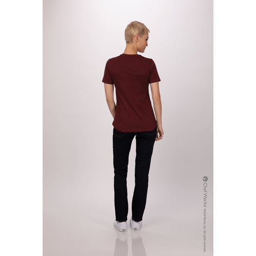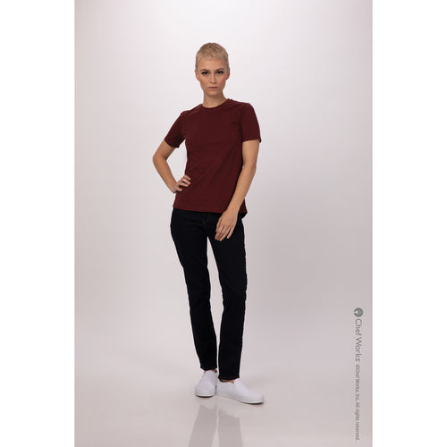 Men's Striped T-shirt, short sleeves, crew neck, reverse cover stitch detail, curved hem, 60/40 poly/cotton, red, medium