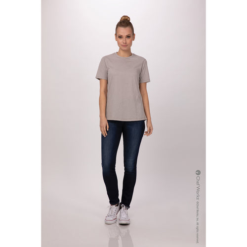 Women's Striped T-shirt, short sleeves, crew neck, reverse cover stitch detail, curved hem, 60/40 poly/cotton, natural, XL