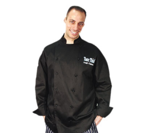 Chef Revival® Cuisinier Chef's Jacket, 2X-large, long sleeve, pen/thermometer pocket, cloth covered 12 buttons, traditional collar, drop shoulder & yoke, Chef-tex™ cotton, black