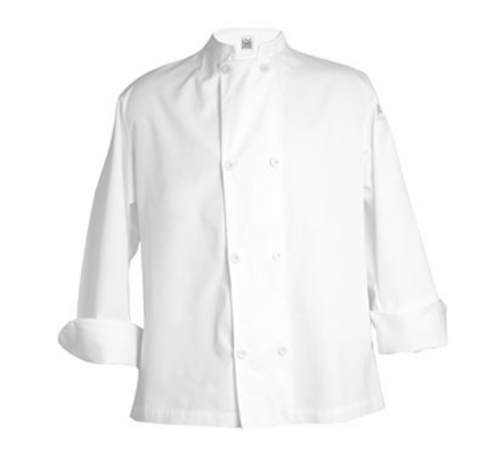 Chef Revival® Chef's Jacket, 2X-large, double breasted, pen/thermometer pocket, clear pearl 8 buttons, long sleeve, traditional collar, poly/cotton, white