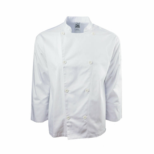 Chef Revival® Performance Series Jacket, 2X-large, double breasted, traditional collar, 8 chef logo buttons, long sleeve, sleeve pocket, mesh back, poly/cotton blend, white