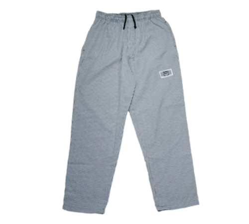 Chef Revival® E-Z Fit Chef's Pants, small, yarned-dyed, poly cotton blend, elastic waistband with drawstring, zip fly closure, 4 pockets, houndstooth