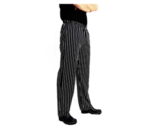 Chef Revival® E-Z Fit Chef's Pants, 4X, black/white pin-stripe, yarn-dyed poly cotton blend, elastic waistband with drawstring, zip fly closure, 4 pockets