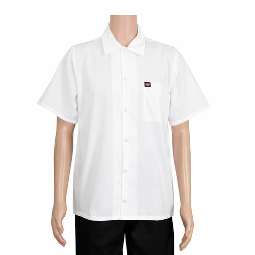 Ritz® Kitchen Wears™ Cook Shirt, 6 snaps on front, mitered breast pocket, 2" longer body, 65/35 poly/cotton poplin, 4.5 oz., white, large