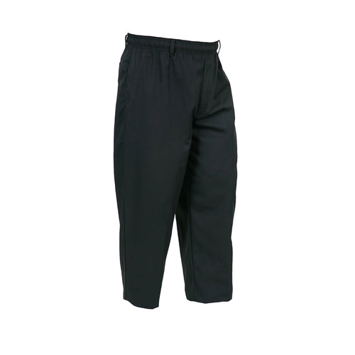 Millennia® Unisex Cook's Pants, elastic waist, belt loops, zipper, (3) pockets, finished cuffs, 65/35 cotton twill, black, 8X