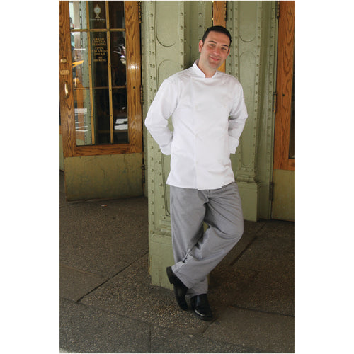 Genesis Unisex Chef Pants, elastic waist, belt loops, zipper, (3) pockets, finished cuffs, 100% yarn-dyed cotton, black & white hounds tooth, 6X