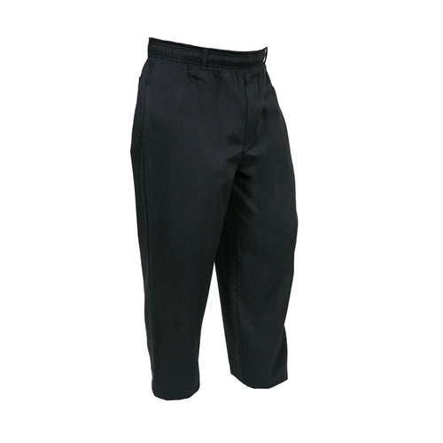 Genesis Unisex Chef Pants, elastic waist, belt loops, zipper, (4) pockets, finished cuffs, 100% cotton twill, black, x-small