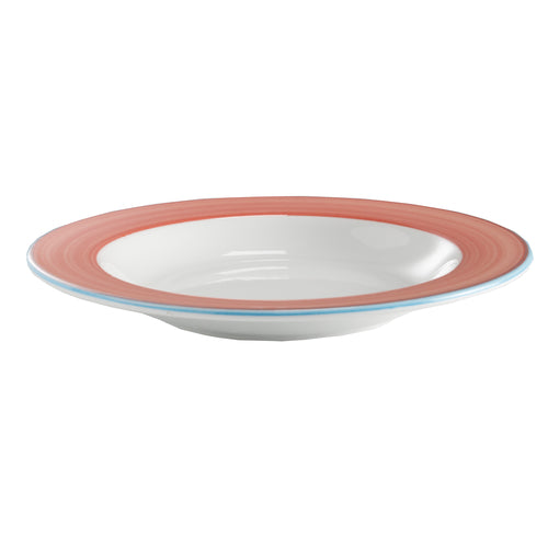 Pasta Bowl, 18-4/5 oz., 12" dia., round, rimmed, scratch/chip resistant, microwave, dishwasher & oven safe up to 380°F, porcelain, blue edge, Corona, Calypso, Coral (Stocked Item)
