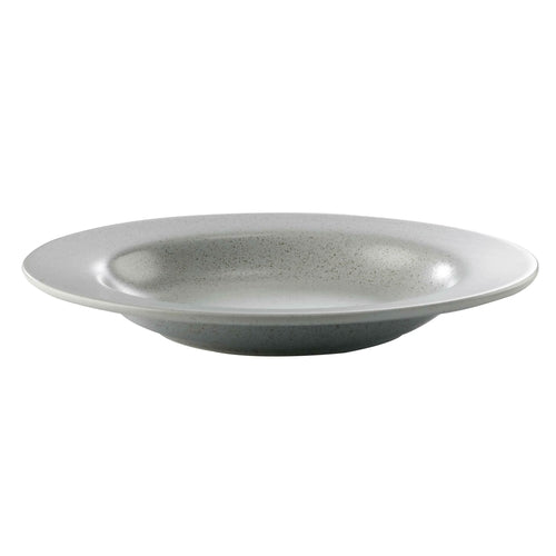Pasta Bowl, 18-4/5" oz., 12" dia., rolled edge, rimmed, scratch/chip resistant, microwave, dishwasher & oven safe up to 380°F, porcelain, Corona, Cosmos Moon, speckled grey reactive glaze (Made to Order item- 6 to 8 weeks lead time, minimum order = case quantity)