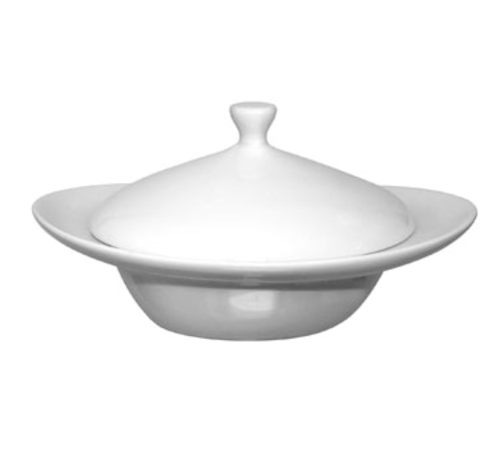 Bowl, 8 oz., 7-3/4" x 5-3/4", with lid, round, wide rim, fully vitrified, microwave & dishwasher safe, lead free, porcelain, Bright White