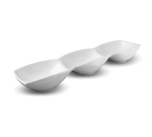 Bowl Platter, 14-1/2" x 4", (3) 5 oz.-compartment oval wells, rectangular, fully vitrified, microwave & dishwasher safe, lead free, porcelain, Bright White