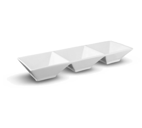 Bowl Platter, 9" x 3", (3) 2 oz.-compartment square wells, rectangular, fully vitrified, microwave & dishwasher safe, lead free, porcelain, Bright White