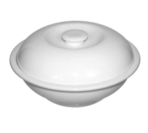 Bowl, 30 oz., 7-3/8" dia. x 3-1/2"H, round, with lid, fully vitrified, microwave & dishwasher safe, lead free, embossed pattern, porcelain, Bright White, Pacific™