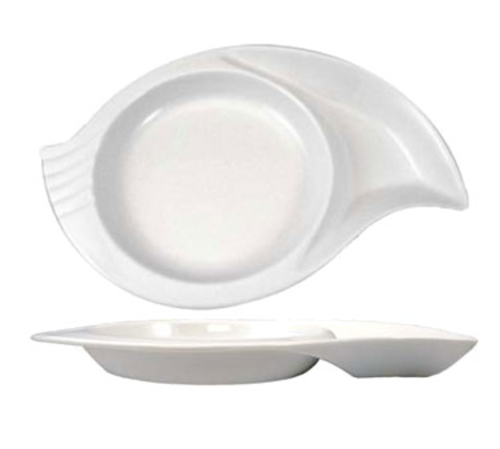 Snail Plate, 8-1/2" dia., 2-compartment, round, fully vitrified, microwave & dishwasher safe, lead free, porcelain, Bright White