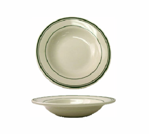 Pasta Bowl, 26 oz., 13" dia. x 1-7/8"H, round, rolled edge, microwave & dishwasher safe, lead free, ceramic, American White with green band, Verona™