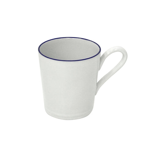 Mug, 12 oz., 5-1/4"L x 3-3/4"W x 4"H, round, with handle, heat & chill retention, oven/microwave/freezer/dishwasher safe, thermal shock/chip/stain-resistant, vitrified, strong glaze finish, fine stoneware, Beja Collection, white-blue