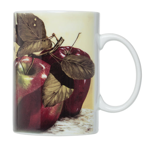 HIC H. Hargove Apples Mug, 16 oz., artwork design wraps around front to back, porcelain (set of 4)