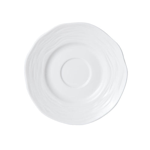 Camilla Saucer, 4-1/2" dia., round, wide rim, embossed, dishwasher, microwave, freezer and oven safe, vitrified porcelain, bright white (fits 5260086) (must be purchased in case quantities)