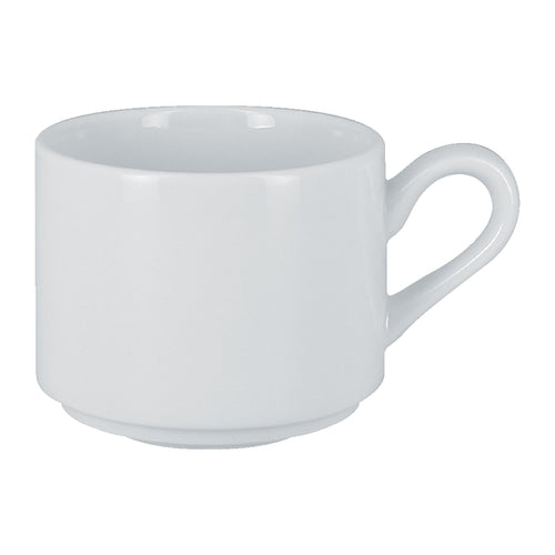 Access Cup, 6-3/4 oz., round, with handle, stackable, reinforced edges, fridge/freezer/oven/microwave/dishwasher safe, Polaris porcelain, white