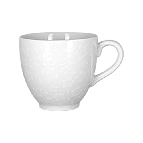 Blossom Cup, 6.75 oz., 3-1/3" dia., round, non-stackable, embossed, shock/scratch resistant, fridge/freezer/oven/microwave/dishwasher safe, high chip resistance, Ivoris