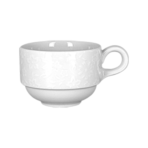 Blossom Cup, 7.8 oz., 3-1/3" dia., round, stackable, embossed, shock/scratch resistant, fridge/freezer/oven/microwave/dishwasher safe, high chip resistance, Ivoris