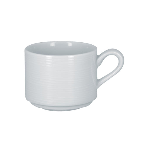 Helm Coffee Cup, 6-3/4 oz., with handle, stackable, fridge/freezer/oven/microwave/dishwasher safe, Polaris porcelain, white