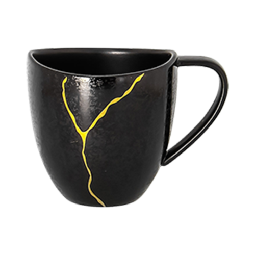 Kintzoo Coffee Cup, 5-1/16 oz., non-stackable, fridge/freezer/oven/dishwasher safe, porcelain, black/gold