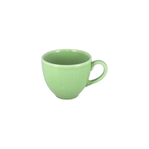 Vintage Coffee Cup, 6.75 oz., non-stackable, shock resistant, lead-free, microwave & dishwasher safe, non-porous glaze, porcelain, crackle texture, green