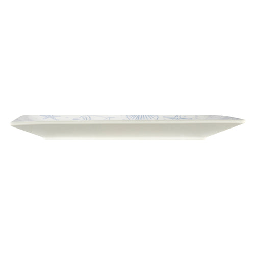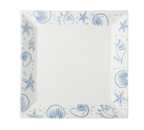Atlantic Seashell Plate, 12"L x 12"W x 1"H, square, dishwasher, oven, and microwave safe, porcelain, Blue decorated Rim/Super White (Sold by case)
