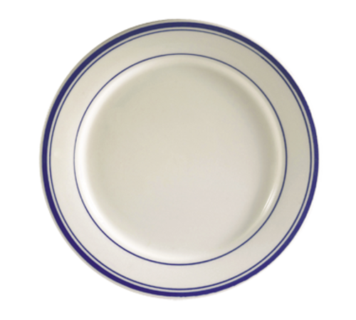 Blue Line Plate, 10-1/2" dia. x 1"H, round, rolled edge, dishwasher, oven and microwave safe, stoneware (ceramic), Blue Band/American White (Sold by case)