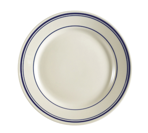 Blue Line Plate, 5-1/2" dia. x 1/2"H, round, rolled edge, dishwasher, oven and microwave safe, stoneware (ceramic), Blue Band/American White (Sold by case)