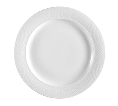 Boston Plate, 7-1/2" dia. x 3/4"H, round, embossed, dishwasher, oven and microwave safe, porcelain, Super White (Sold by case)