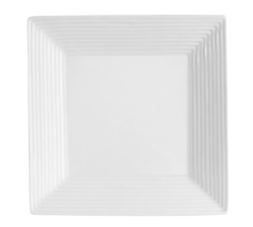 Cambridge Plate, 8"L x 8"W x 3/4"H, square, embossed rim, dishwasher, oven and microwave safe, porcelain, Super White (Sold by case)