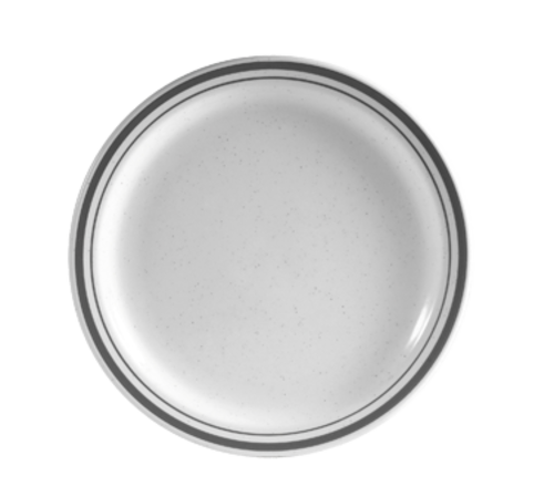 Emerald Plate, 10-1/2" dia. x 1"H, round, narrow rim, dishwasher, oven and microwave safe, stoneware (ceramic), Emerald Rim/Emerald Speckled/American White (Sold by case)