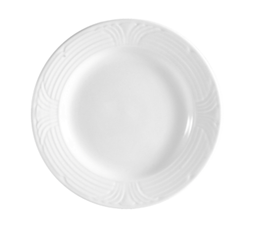 Corona Plate, 10-1/2" dia. x 1"H, round, embossed, dishwasher, oven and microwave safe, porcelain, Super White (Sold by case)