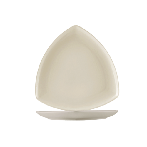 REC Plate, 8"L x 8"W x 7/8"H, triangular, coupe, dishwasher, oven and microwave safe, stoneware (ceramic), American White (Sold by case)