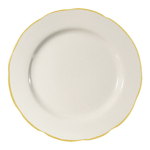Seville Plate, 5-1/2" dia. x 3/4"H, round, scallop edge, dishwasher and oven safe, stoneware (ceramic), Gold Band/American White (Sold by case)
