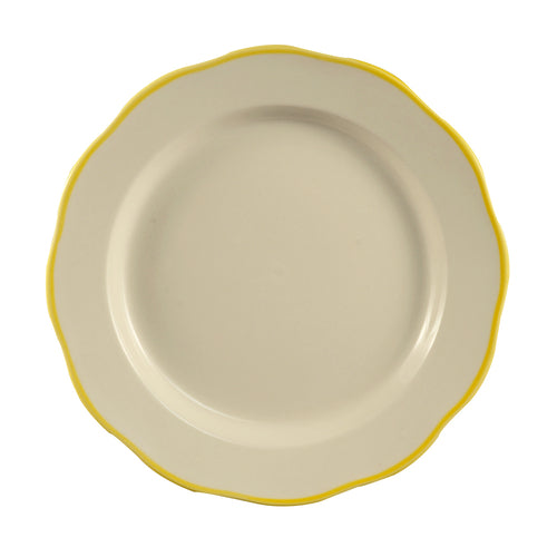 Seville Plate, 7-3/8" dia. x 1"H, round, scallop edge, dishwasher and oven safe, stoneware (ceramic), Gold Band/American White (Sold by case)